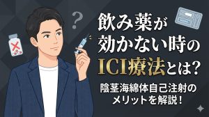 勃起のプロセスは、陰茎にある海綿体という組織に血液が満たされることで始まります。このとき、血液がドロドロだと十分な量が流れ込みません。