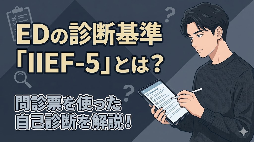 最近、夜の自信がなくなってきたと感じていませんか。そんなときに役立つのが、世界的に使われているEDの診断基準「IIEF-5」です。この問診票を使えば、自宅にいながら... -