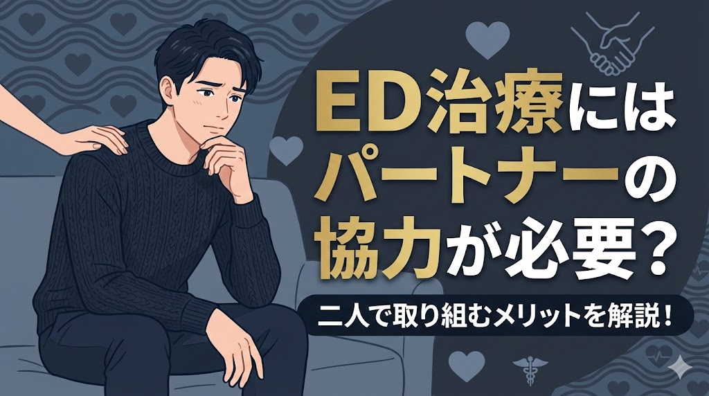 ED治療にはパートナーの協力が必要だと感じつつ、言い出せずに悩んでいませんか。EDは男性一人だけの問題ではありません。実は、パートナーと一緒に二人で取り組むメリ... -